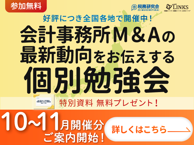 ※参加者プレゼントは、会計事務所の譲渡(売却)をお考えの所長税理士で、個別勉強会にご参加された方に限ります。